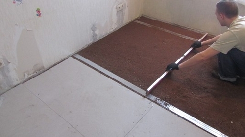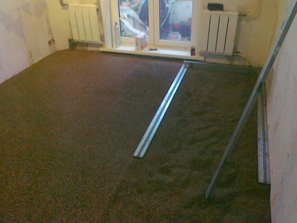 - Dann müssen Sie den Claydrite auf der Basis ausrichten. Um dies zu tun, können Sie Baken aus Metallprofilen installieren. Produce solche Arbeit sollte mit dem Niveau sein.