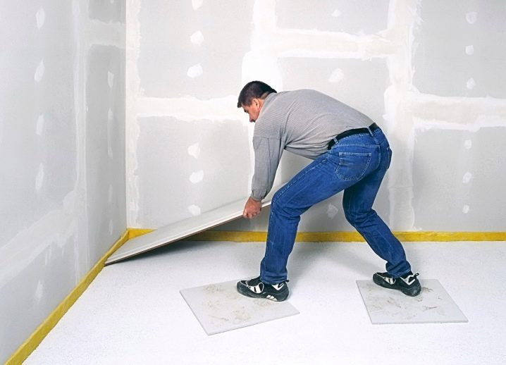 - Die GVL-Platten müssen von der Ecke entfernt werden, die so weit wie möglich von der Tür entfernt ist. So schützen Sie sich vor möglichen Schäden.