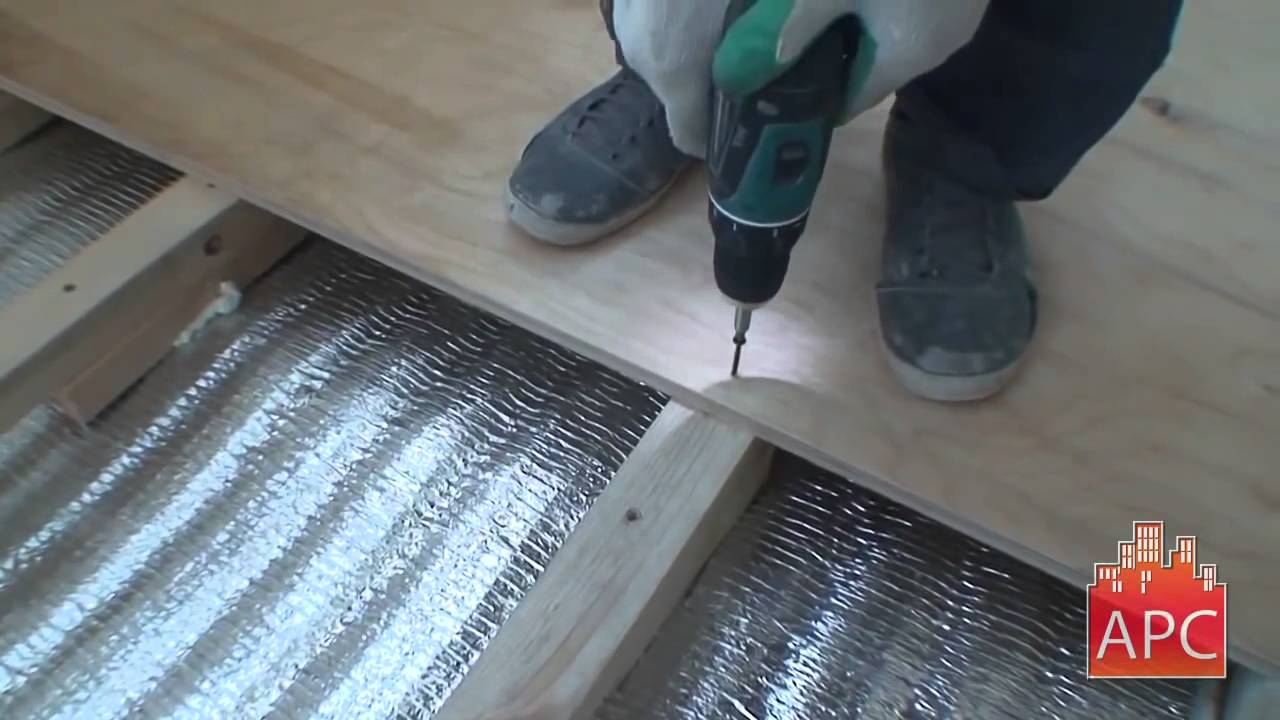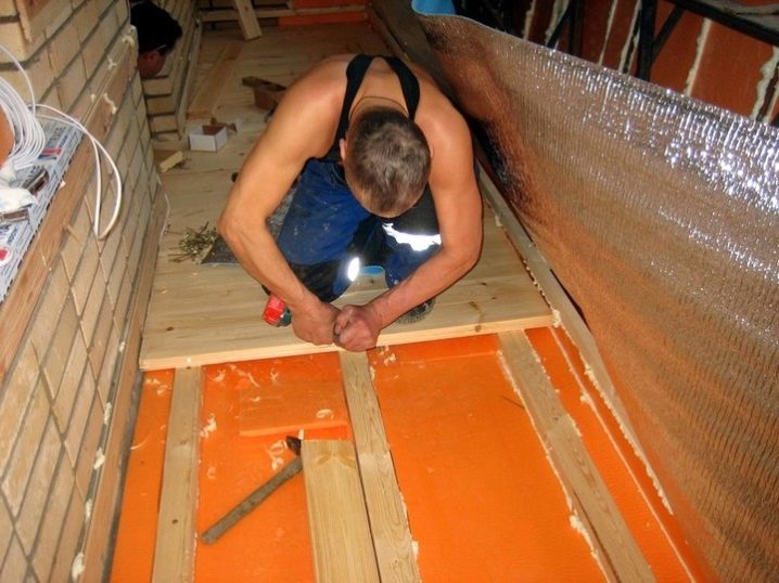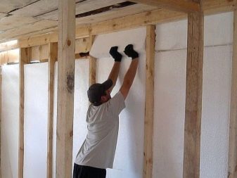 - Auf dem gefluteten Estrich kann eine weitere Dämmschicht verlegt werden. Dazu müssen Sie die Stäbe montieren und von innen eine Schicht des ausgewählten Materials für die Isolierung ausführen. Dann legen Sie eine Schicht Dampfsperre und schließen Sie die Oberseite mit Brettern oder Sperrholz;