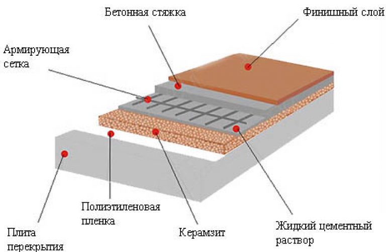 - Unter dem Estrich kann Lehm verwendet werden. Es wird für lange Zeit dienen und kann in Hochhäusern verwendet werden.