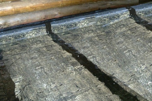 - Vorbereitung von Dachmaterial und anderen Dämmstoffen - sie werden für die Abdichtung benötigt. Das erste, was Sie brauchen, um sie auf der Oberfläche der Basis zu rollen. Überlappung um 10 cm legen.