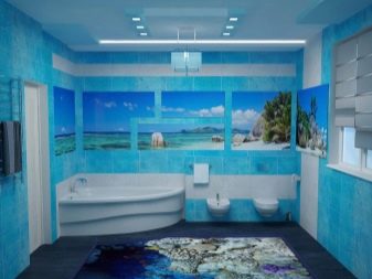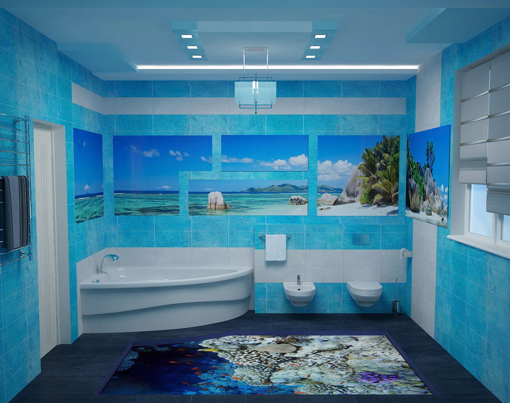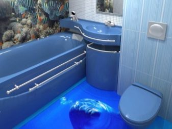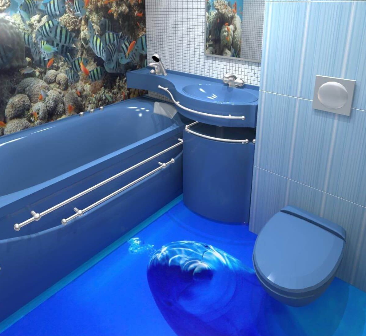 Im Badezimmer bewirkt eine Epoxidbeschichtung, wenn sie dekoriert ist, notwendigerweise einen dreidimensionalen Effekt, der das Unterwasserthema vollständig offenbart. Es kostet dich unglaubliches Geld, aber es ist schwer, es nicht zuzugeben - das Ergebnis ist faszinierend.