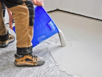 Die zum Gießen benötigten Materialien sind Zementmörtel und Grundierung. Ein Betonboden mit einer zweischichtigen Schicht (von unten - eine halbflüssige Schicht für die Nivellierung, oben - Finishing) ist notwendig, damit der Bodenbelag eine zuverlässige Unterstützung bietet, während die Grundierung die maximale Haftung der Masse auf dem Beton gibt, wodurch die Beschichtung nicht abblättert und nicht reißt.