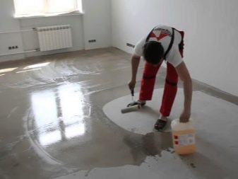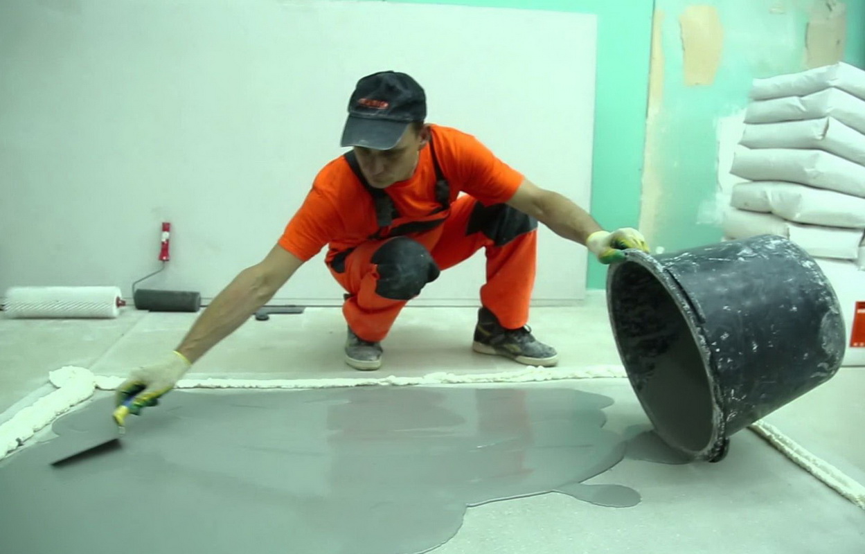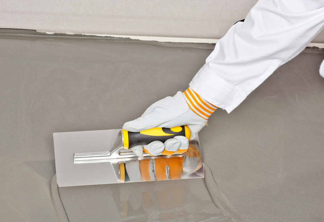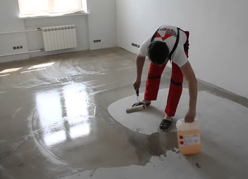 Nach dem Aushärten der Deckschicht wird diese daher sorgfältig abgesaugt (Profis tun es mit Super-Power Industriestaubsaugern), und auch mit Hilfe von Lösungsmitteln von Schmutz und Fett befreit. In einigen Fällen wird auch ein zusätzliches Schleifen der Betonoberfläche verwendet, da jede Unebenheit des Substrats den Massenfluss zum Gießen stark beeinflusst. Danach wird die Basis gründlich mit Primer und zweimal imprägniert.