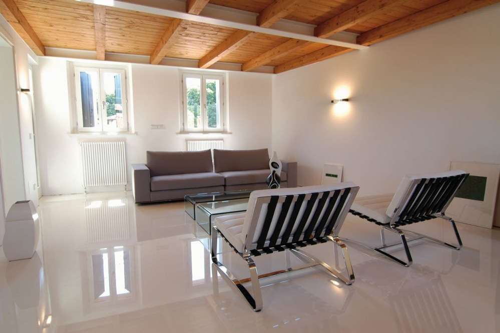 Es lohnt sich jedoch, auf jene Menschen aufzupassen, die das Innere häufig wechseln.Aufgrund der hohen Haftung der Beschichtung mit einer Betonestrich wird das offensichtliche Plus an Dauerhaftigkeit zu einem Minus für nachfolgende Reparaturen, da man den alten Boden einfach nicht entfernen kann und der neue direkt aufgelegt werden muss.