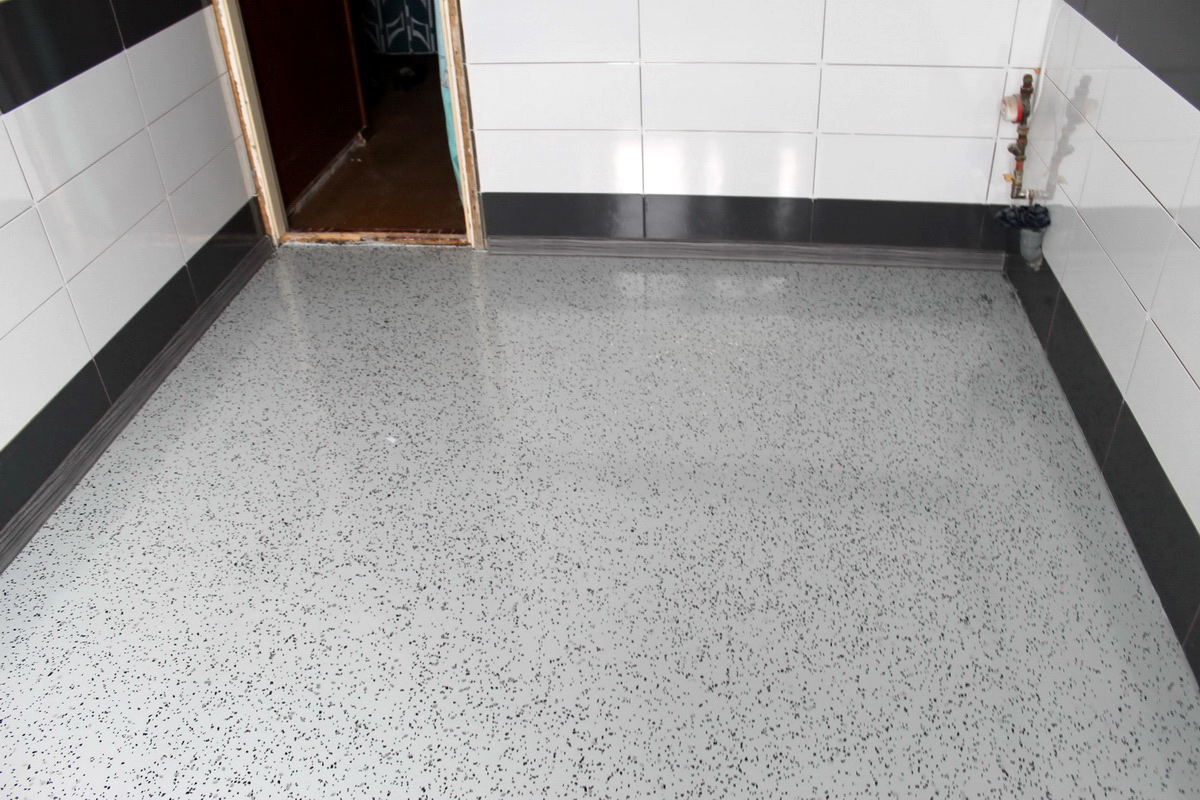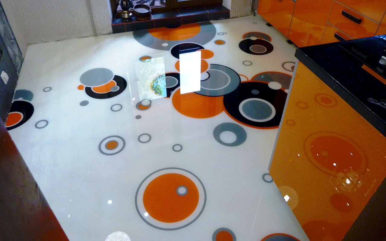 Zu Hause sollten solche Böden in einem Raum gegossen werden, in dem eine erhöhte Feuchtigkeit vorhanden ist und die Möglichkeit besteht, ätzende und verschmutzende Stoffe zu verwenden, sowie wo eine hohe mechanische Belastung des Bodens wahrscheinlich ist oder ein Fall von schweren und scharfen Gegenständen möglich ist. Also Das eigentliche Anwendungsgebiet des Epoxidbodens beschränkt sich auf das Bad und die Kücheseltener ist eine solche Entscheidung im Flur und in der Toilette angebracht.