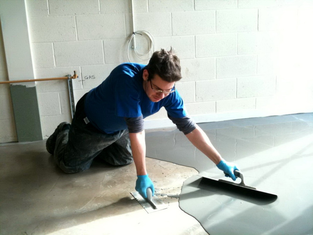 - Reparaturschwierigkeiten jetzt und in Zukunft. Die Installation eines selbstnivellierenden Bodens scheint nur das einfachste Verfahren zu sein, aber in den meisten Fällen können Sie es nur Profis anvertrauen, da der kleinste Fehler zur Beschädigung der teuren Beschichtung führt. Aber selbst Fachleute werden solche Reparaturen nicht schnell durchführen, da die Verfestigung der Epoxidbeschichtung in einigen Fällen fast eine Woche des Wartens erfordert, ohne dass man darauf laufen kann. Wenn sich der alte selbstnivellierende Boden jedoch langweilt oder, schlimmer noch, während des Gießvorgangs beschädigt wird, ist es fast unmöglich, ihn zu ersetzen, weil er sich zu sehr mit allem umschließt.