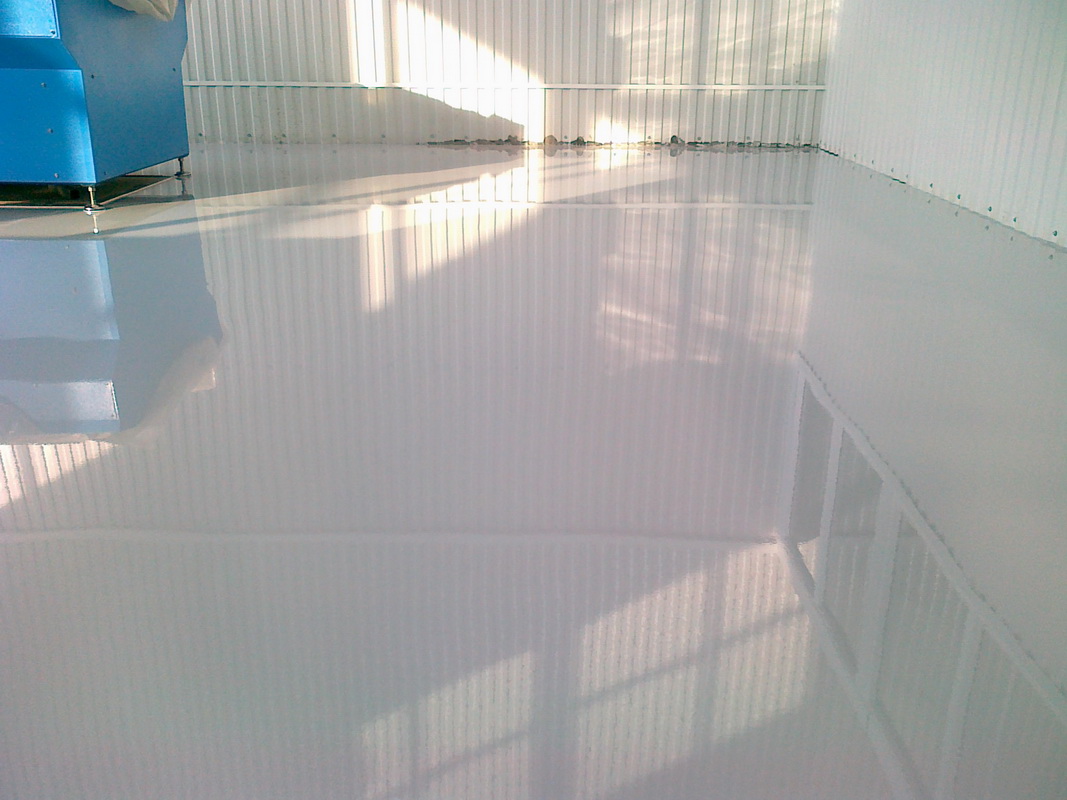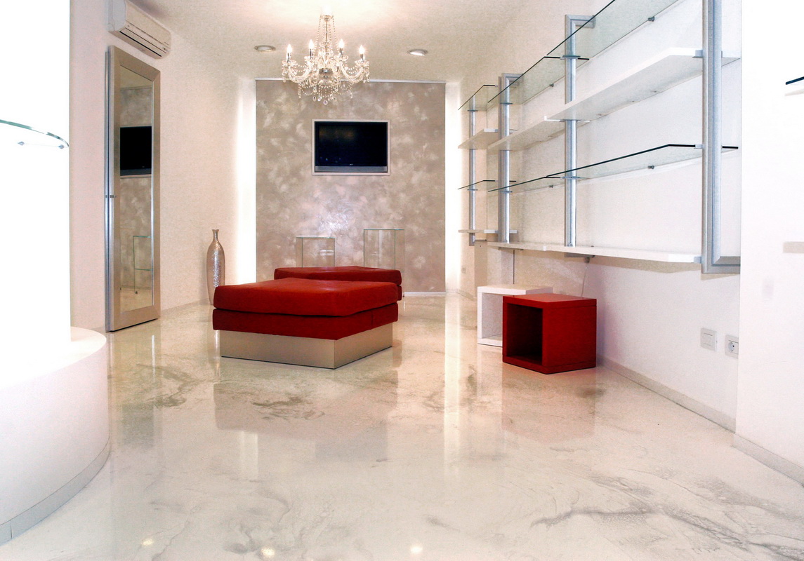 Epoxidböden unterscheiden sich radikal von allen klassischen Bodenbelägen, da sie durch Gießen einer speziellen flüssigen Masse verlegt werden.Die Zusammensetzung basiert auf einer Polymerbasis, so dass nach einer gewissen Zeit nach dem Gießen die Oberfläche, die wie jede Flüssigkeit eine perfekt horizontale Position einnimmt, gefriert und einen glatten, aber rutschfesten Boden bildet. Gleichzeitig sieht es so vollständig wie möglich aus, da es in seiner Konstruktion keine Nähte vorsieht.