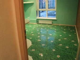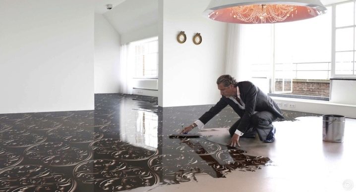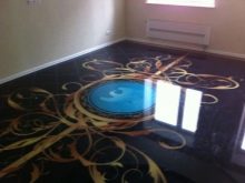 Bulk Boden kann nicht nur eintönig und ziemlich einfach, sondern auch interessanter und hell sein. Es wurde zuvor festgestellt, dass spezielle Aufkleber mit verschiedenen Bildern auf solche Oberflächen aufgebracht und mit Lackformulierungen für Glanz beschichtet werden können. Heute sind solche Designlösungen besonders beliebt, da viele Menschen ihr Zuhause so frisch und interessant wie möglich gestalten.