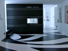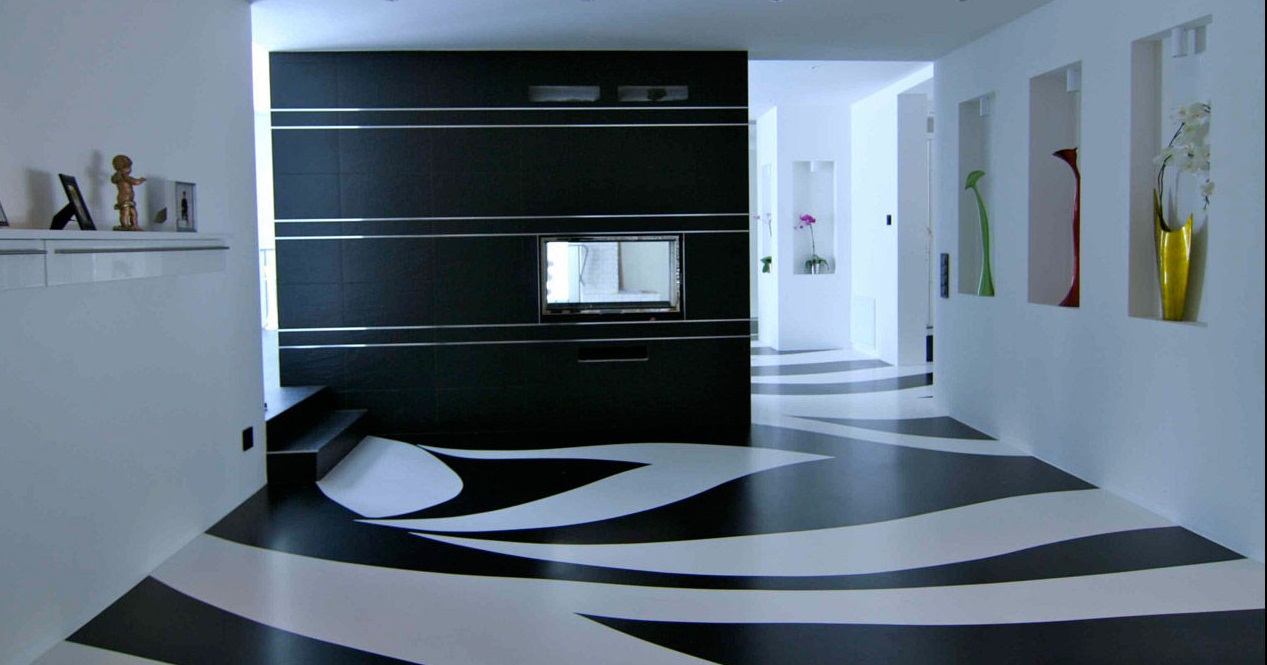 - Wenn Sie Originalität in das Innere eines Hauses oder einer Wohnung bringen möchten, sollten Sie sich an interessante Bodenbeläge mit 3D-Effekt (mit einem Bild) wenden. Sie sehen einfach unnachahmlich aus! Sie sollten jedoch vorsichtig mit ihnen sein. Vermeiden Sie zu bunte und lächerliche Drucke sowie riesige und verzerrte Bilder. Solche Elemente dekorieren nicht nur das Interieur, sondern machen es hoffnungslos geschmacklos. In einem kleinen Bad oder einer Toilette wäre es schön, den Boden mit einer Imitation der Küste (mit Kieseln und Muscheln) und in der Halle - eine Imitation von kleinen Kieselsteinen, verdünnt mit Holzbodenbelag und LED-Beleuchtung zwischen ihnen zu sehen.