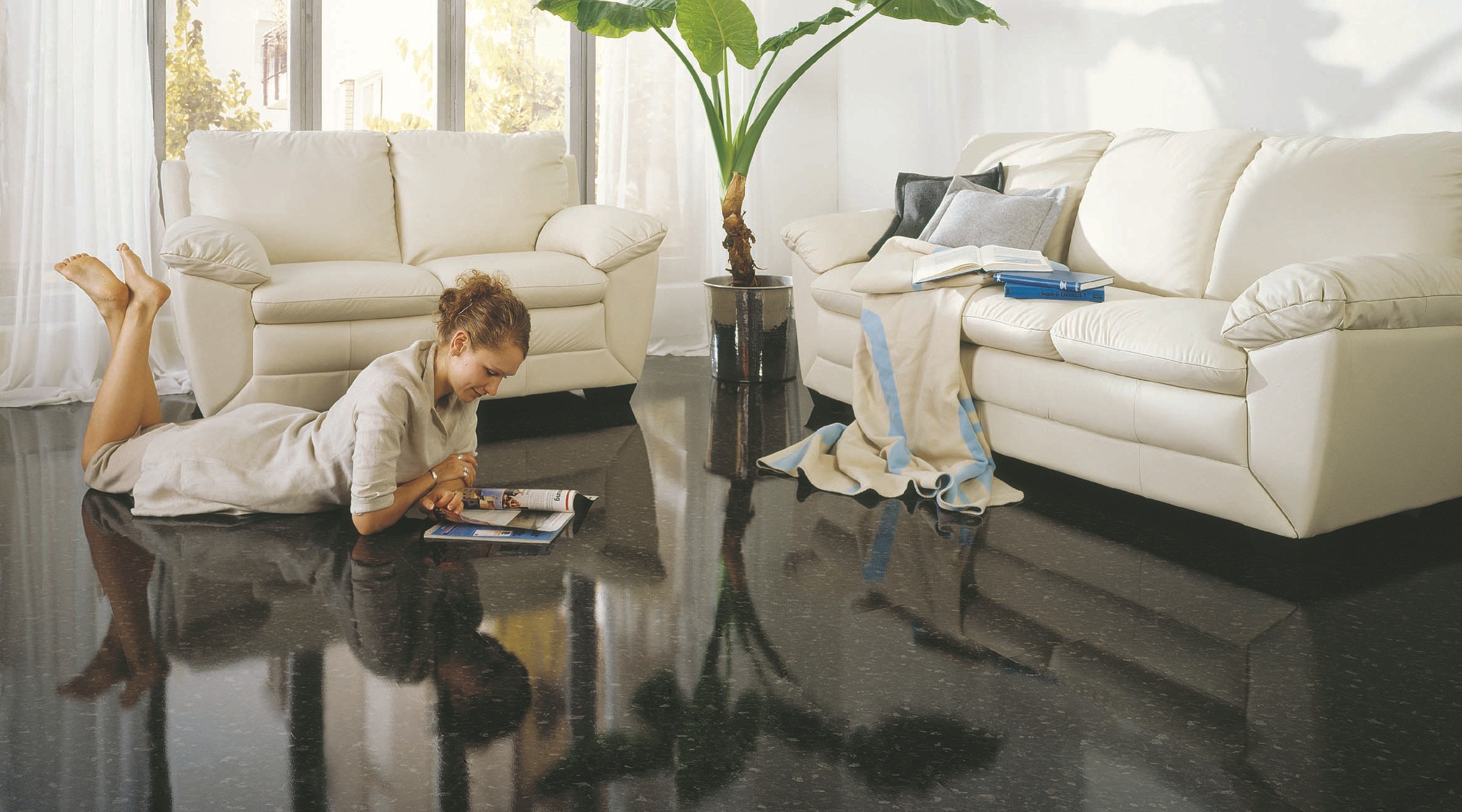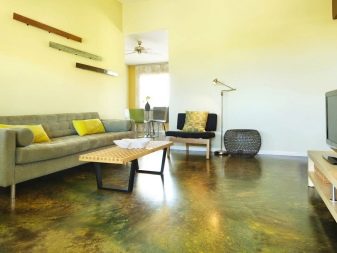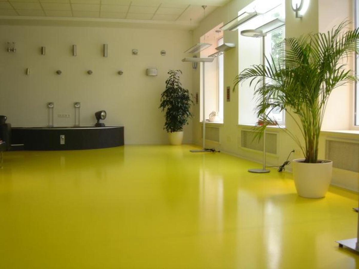 In Wohnräumen werden Reparaturen häufig mit selbstnivellierenden Böden durchgeführt, die Polyurethan enthalten. Eine Besonderheit dieser Beschichtungen ist die Präsenz eines schönen Glanzes und die größte Auswahl an Farben. Dank dieser Eigenschaften ist es möglich, den optimalen Flüssigkeitsboden für jedes Interieur zu wählen.