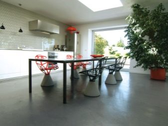 Es ist möglich, ein solches Bodenmaterial in Räumen mit den unterschiedlichsten Temperaturbedingungen (von -60 bis +110 Grad) zu verwenden. Die Oberfläche des Acryl-Zement-Bodens wird nicht rutschig, selbst wenn Sie Wasser darauf verschütten. Zu Hause werden solche Fälle jedoch nicht oft verwendet.