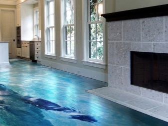 Es wird jedoch nicht empfohlen, sie in Räumen zu verwenden, in denen sie ständigen Erschütterungen und ähnlichen Einwirkungen ausgesetzt sind. In einer solchen Umgebung werden sie deshalb lange nicht bestehen im Produktionsbereich können sie nicht installiert werden, aber für Einrichtungsgegenstände ist es eine gute Lösung. Außerdem hat der Epoxidboden eine attraktive Erscheinung, die das Interieur jedes Zimmers schmücken und origineller machen kann. Es kann sicher verwendet werden, um erstaunliche 3D-Böden zu erstellen.