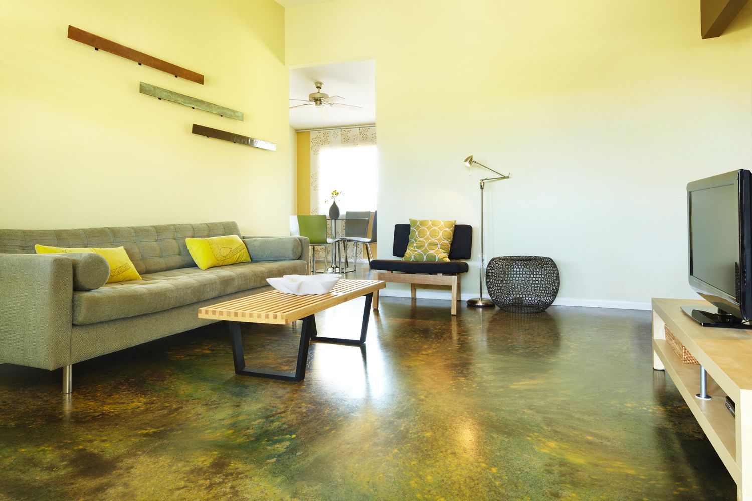 Heute sind die selbstnivellierenden Böden, die in ihrer Zusammensetzung Epoxidharze haben, sehr beliebt. Oft werden diese Materialien bei der Dekoration von Wohnräumen verwendet. Der Hauptvorteil von Epoxidböden ist ihre Beständigkeit gegenüber Alkalien, Säuren und anderen aggressiven Mischungen.
