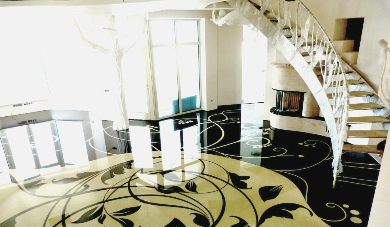 Es können natürliche Kompositionen, Seeprints, kontrastierende Muster in orientalischen und künstlerischen Stilen, die Wirkung von schönen Gemälden und felsigen Küsten sein.Dazu genügt es, die passenden Beschichtungen mit den gewünschten Bildern zu finden und sorgfältig auf die Oberfläche des selbstnivellierenden Bodens aufzubringen. Auch heute noch sind die Marmorböden sehr beliebt. Sie werden oft in den großartigen Innenräumen verwendet, die in den aristokratischen Richtungen ausgeführt werden.