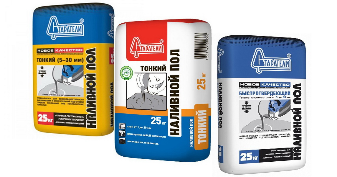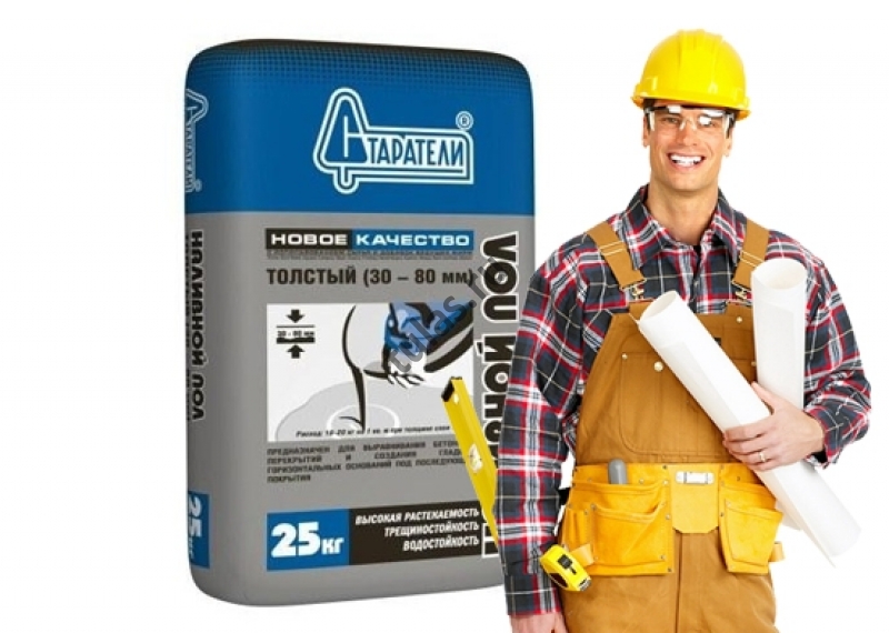 - "Tolstoi Bergarbeiter" (ab 230 Rubel) auf der Grundlage von Zement. Levels Betonboden mit sehr starken Unregelmäßigkeiten. Wird zum Auftragen dicker Schichten verwendet. Sie kommen schwer, aber haltbar. Geeignet für Garage und Bad sowie die Straße mit einem Baldachin. Trocknet am längsten von dieser Liste.
