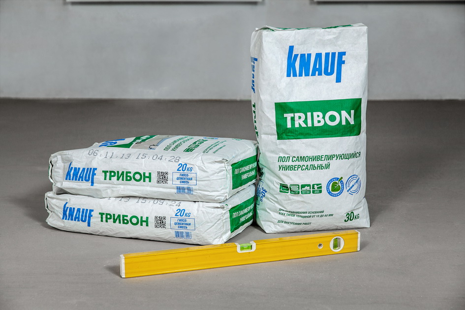 - Knauf-Tribon (ab 320 Rubel). Geeignet für alle Arten von Räumlichkeiten, einschließlich der Bucht in der Toilette. Es ist möglich, bereits nach 6 Stunden auf der Oberfläche zu gehen und an einem Tag Möbel zu verlegen, um die Reparatur fortzusetzen.