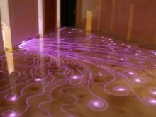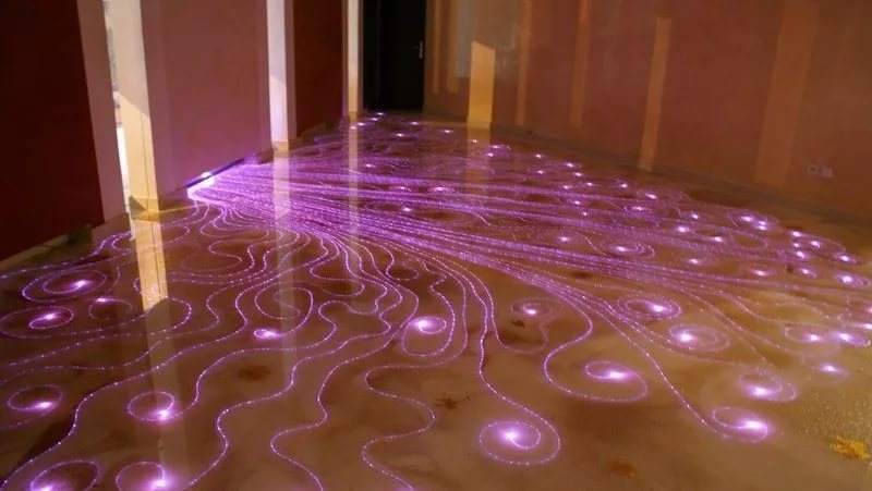 - Manchmal wird flüssiges Linoleum sogar mit einem solchen Element wie Beleuchtung geliefert.