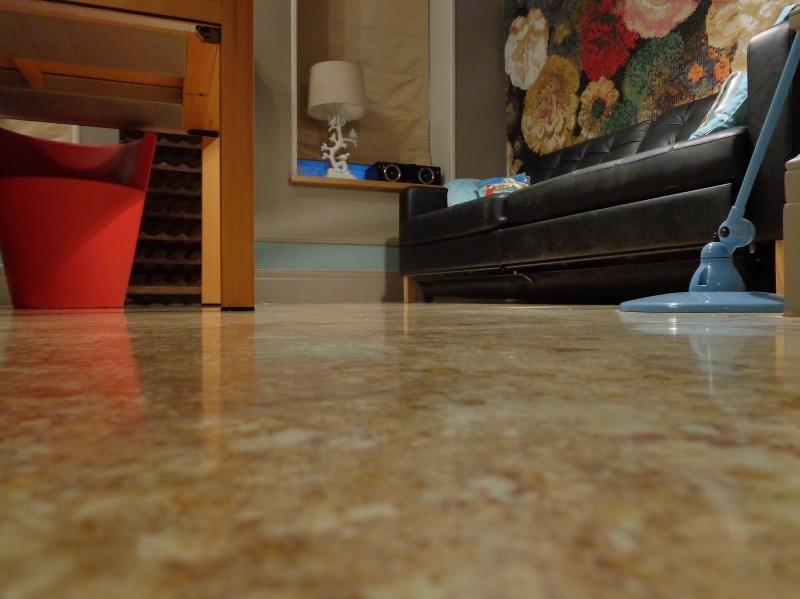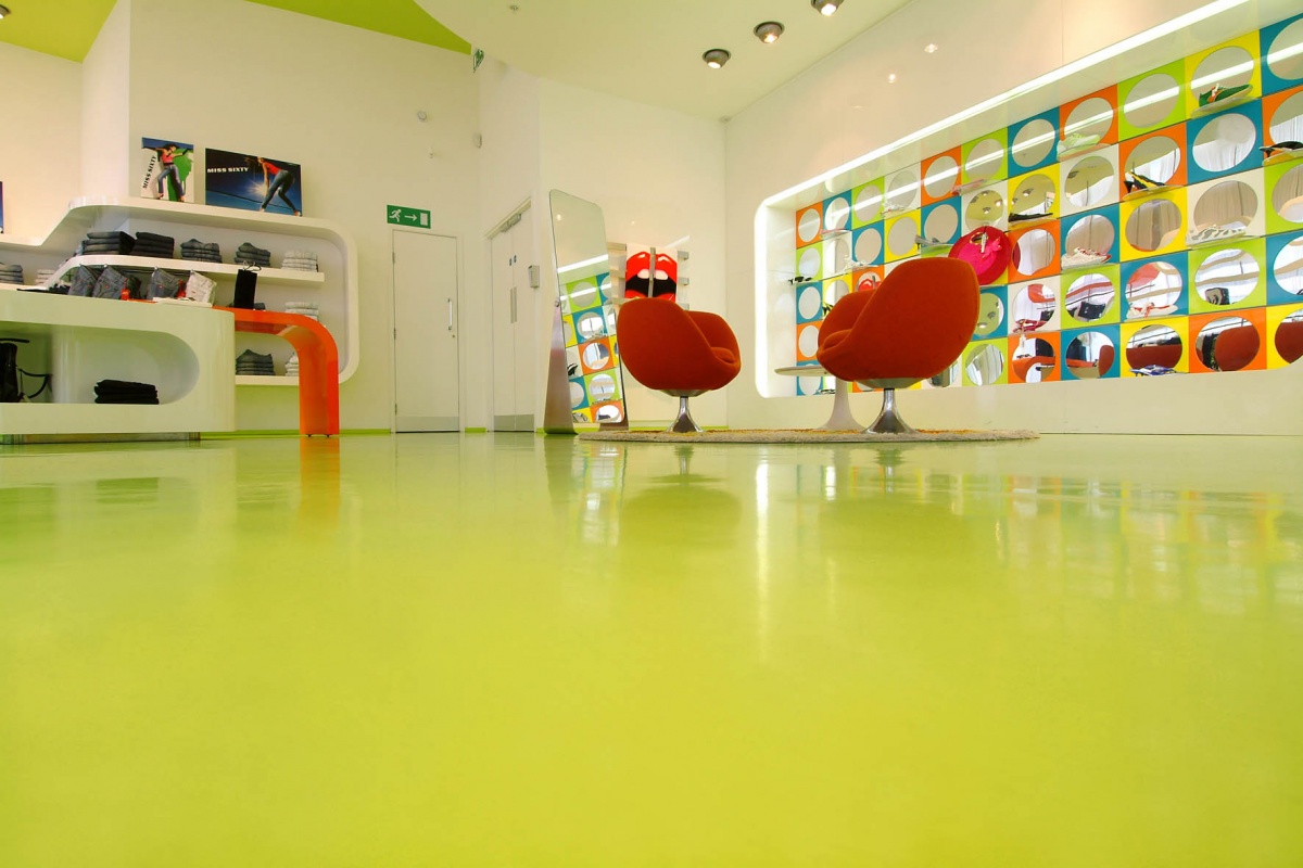 Die Polyurethan-Beschichtung ist eine großartige Alternative zu herkömmlichem Linoleum und schafft einen ungewöhnlichen Akzent in der Innenarchitektur.