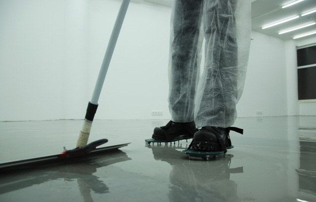 - Um die ideale Oberfläche für Betonböden zu schaffen, wird manchmal eine selbstnivellierende Masse verwendet. Nach dem Trocknen ist es notwendig, es zu schleifen.