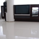 - Die chemische Beständigkeit ermöglicht es dem Boden, sein Aussehen nicht zu verändern, auch nicht unter dem Einfluss von irgendwelchen aggressiven chemischen Mitteln, von irgendwelchen Arten von Waschmitteln auf andere, versehentlich verschüttet.