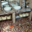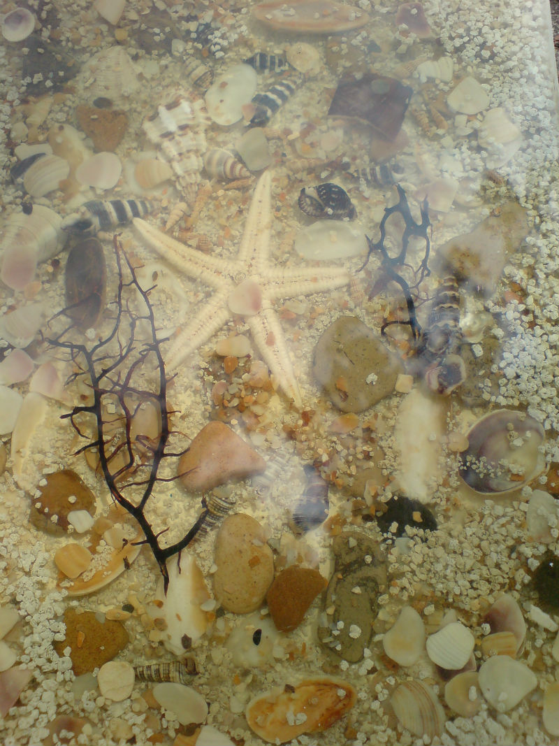 Mit dieser Lösung können Sie die besten Vorteile der Polymerfüllung mit dem Aussehen erzielen, indem Sie buchstäblich alle dekorativen Einsätze aus den unerwartetsten Materialien und Komponenten verwenden.