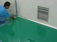 Auch hier trägt die Verwendung all dieser Stoffe nicht zur Schaffung perfekter Sauberkeit bei, daher sollte der Boden in einem solchen Raum berechnet werden maximale Reinigungsfreundlichkeit und minimale Verschmutzung sowie hohe chemische Beständigkeit. Folglich sind Materialien auf der Basis von Epoxidharz oder Methylmethacrylat sehr geeignet.