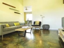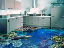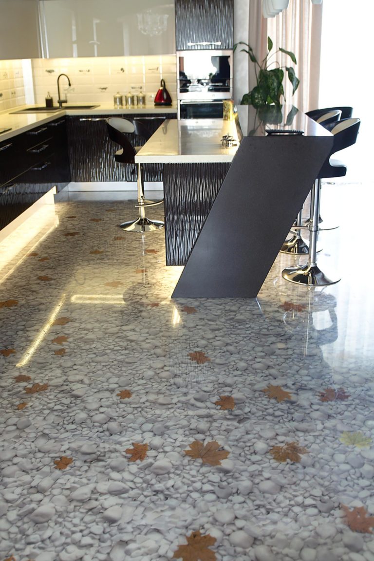 Müssen das sagen Selbstnivellierender Boden im Innenraum ist nicht mit irgendeiner Wanddekoration kombiniert, und dieser Moment muss auch berücksichtigt werden, weil das Ändern des überschwemmten Bodens sehr problematisch ist. In Wohnräumen in Kombination mit Polyurethan auf dem Boden sieht Dekorputz an den Wänden am besten aus.Teure Vinyltapeten werden normal erscheinen, aber normale Papiertapeten werden höchstwahrscheinlich unpassend sein. Für die Küche, in Kombination mit Epoxidböden, passt entweder eine klassische Fliese oder ein farbiger Putz, mit dem der selbstnivellierende Boden in der gleichen Weise kombiniert wird wie das Laminat, das oft von ihnen simuliert wird.