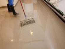 - Die hohen Kosten betreffen nicht nur das Material selbst, sondern auch die geleistete Arbeit. Obwohl die Flüssigkeit, die zum Gießen verwendet wird, in der Lage ist, sich selbst zu nivellieren, wird wegen ihrer hohen Kosten gewöhnlich besondere Aufmerksamkeit auf die Schaffung einer perfekt ebenen und ausgeglichenen Basis gerichtet. Es ist ziemlich teuer, und es braucht auch viel Zeit, ganz zu schweigen von der Tatsache, dass Qualitätsergebnisse Vertrauen in die hohe Professionalität und das Engagement der Arbeiter erfordern.