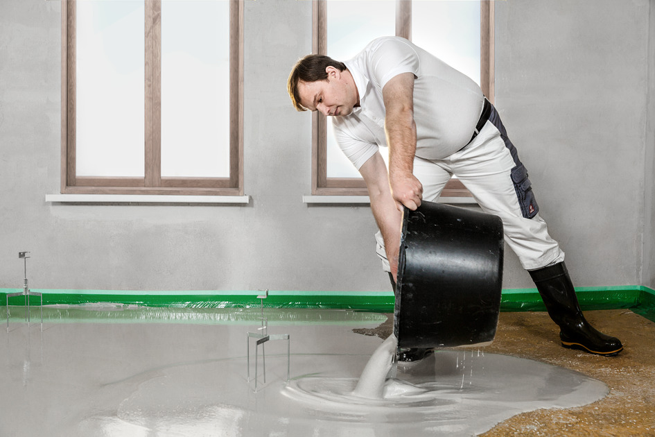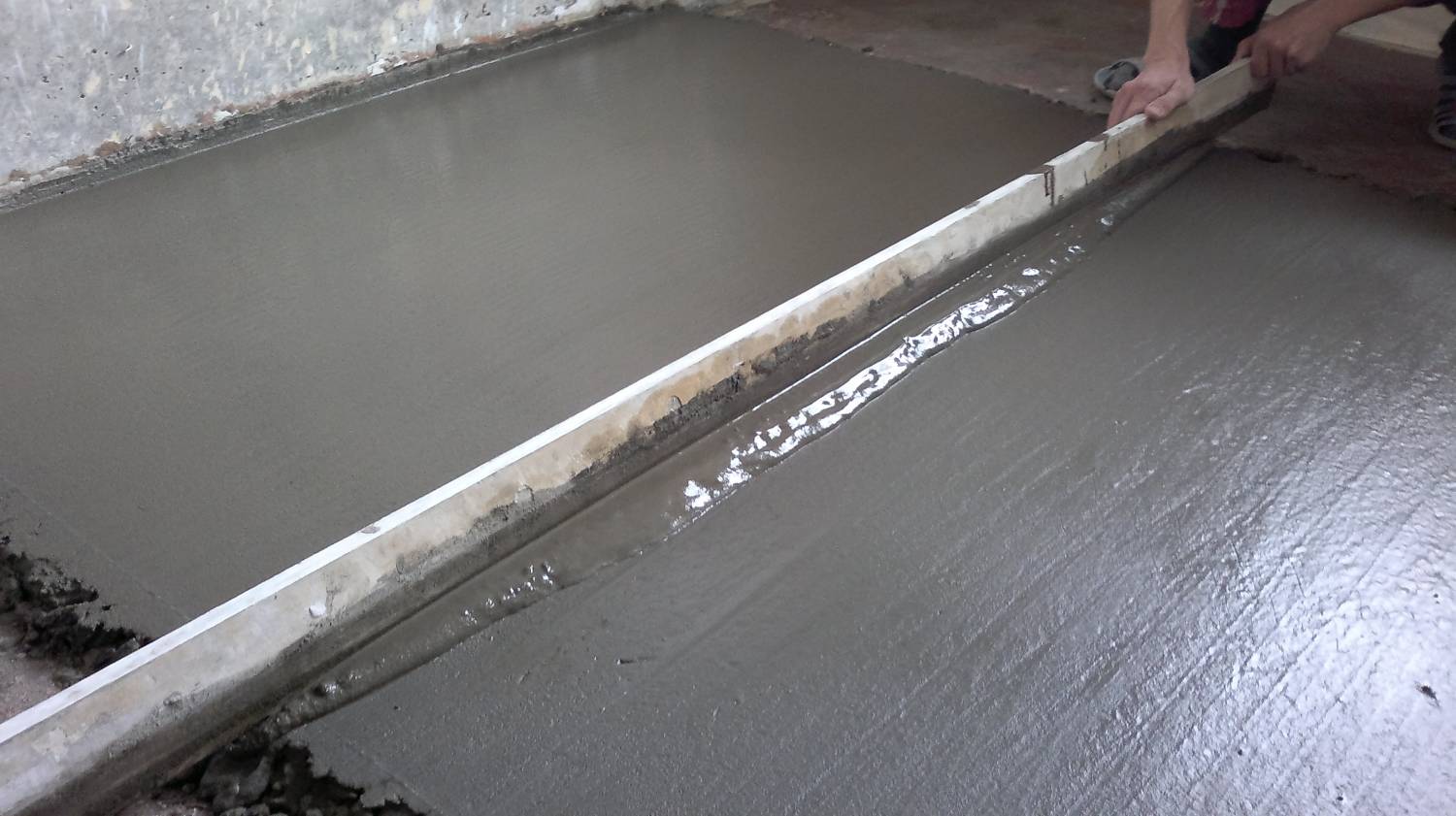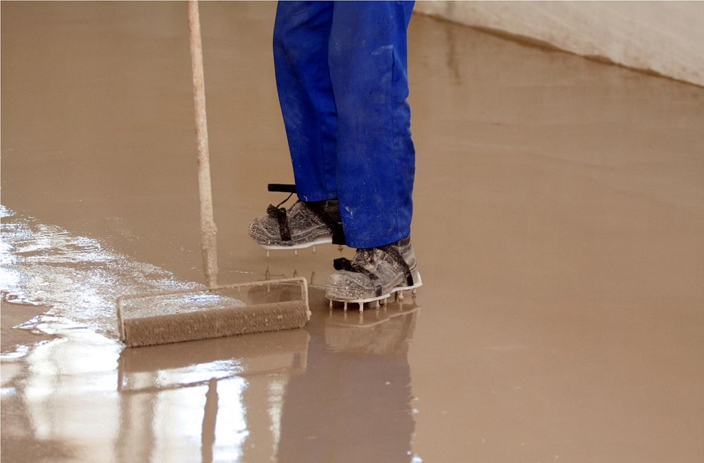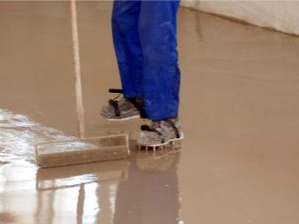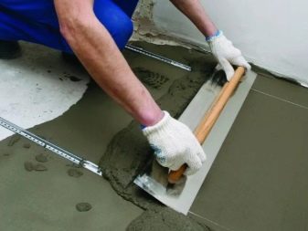 Die Mischung, die in Zukunft den Boden bilden wird, wird auf einer zuvor vorbereiteten Oberfläche aufgetragen, die oft aus Beton besteht. Eine solche Oberfläche erfordert ein Minimum an Feuchtigkeit und eine perfekte horizontale Position, daher wird bei der Verlegung einer neuen Krawatte in zwei Schritten vorgegangen - die erste Schicht wird mit einer halbtrockenen Masse aufgetragen, und nur eine dünne Nivellierschicht (innerhalb eines halben Zentimeters) wird aufgetragen. Nur nachdem der Boden gut groß istx, Sie können mit der weiteren Aktion fortfahren.