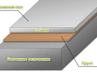 Die Füllung mit Polymer erfolgt im Durchschnitt in einer Dicke von 1,5-3 Millimetern, aber dies ist natürlich nur dann der Fall, wenn der Betonestrich qualitativ hergestellt wurde und tatsächlich horizontal ist. Der Materialverbrauch pro 1 m2 errechnet sich aus der Tatsache, dass Ein Liter flüssige Masse ist ein Quadratmeter Oberfläche, die mit einer Schicht von einem Millimeter bedeckt ist. Die Dicke der Schicht kann etwas variieren, da die Flüssigkeit in alle Nähte und Vertiefungen fließt, so dass Sie Floodböden mit einem Rand kaufen müssen.