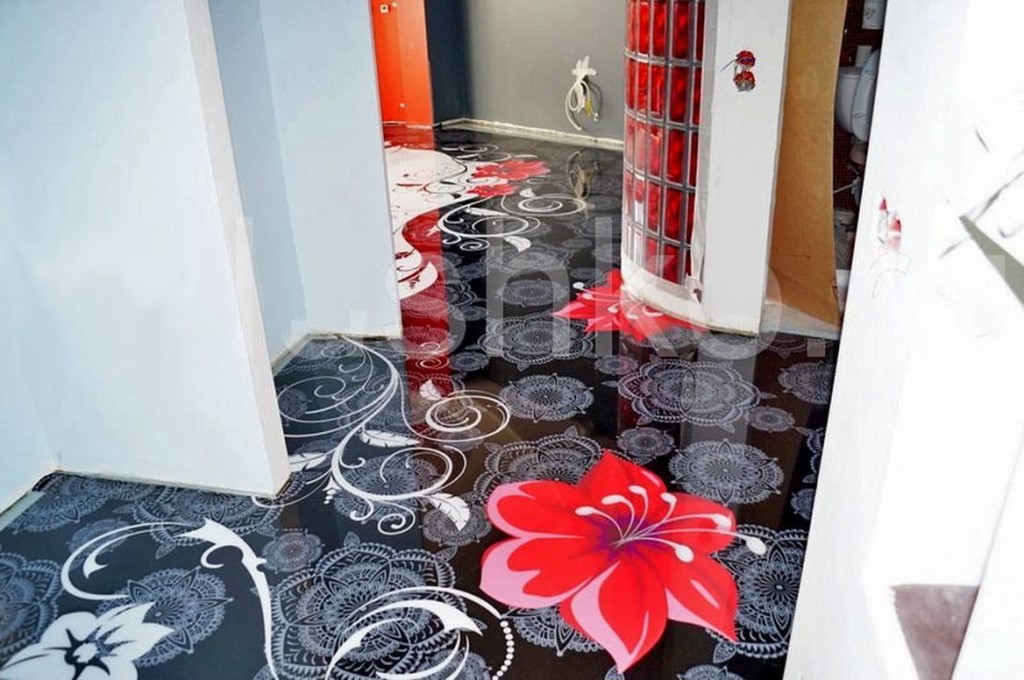 Solch ein kombinierter "Kuchen" ermöglicht es einer Person mit einem kreativen Ansatz, einen ziemlich stumpfen Bodenbelag in ein echtes Kunstwerk zu verwandeln, das Sie nie ändern möchten, was sofort das Problem der Schwierigkeit löst, eine solche Abdeckung zu ersetzen.