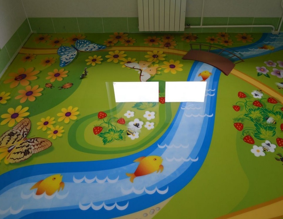 Ausführlicher über die Technologie der Anlage des Polymerbodens mit den Mustern schauen Sie weiter.