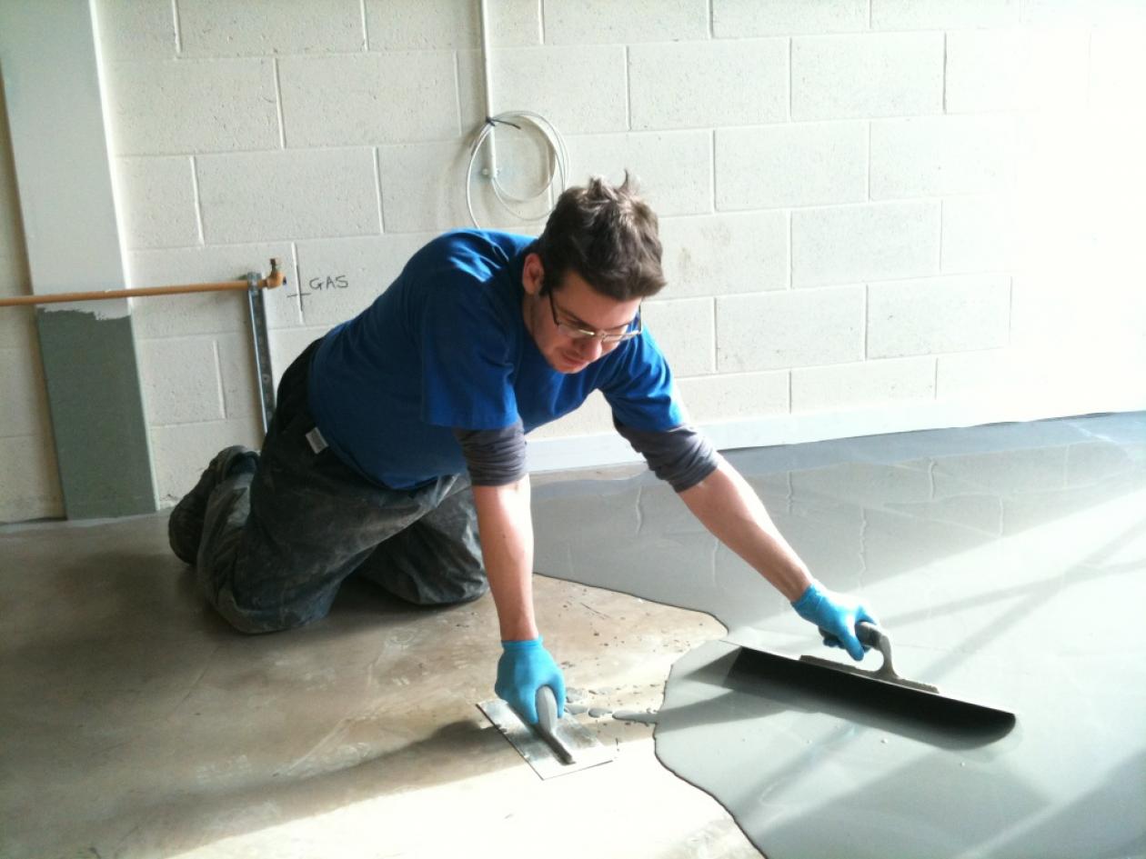 In einigen Fällen kann ein alter Betonestrich als Grundlage genommen werden, aber dann wird er sorgfältig von Staub und anderen Verunreinigungen vorgereinigt, und alle sichtbaren Risse werden sorgfältig mit einer speziellen Epoxidverbindung abgedichtet.
