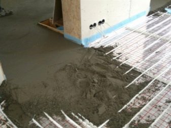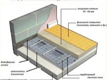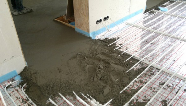 - Dieser Estrich eignet sich für Wasser und elektrische Fußbodenheizung. Seine minimale Höhe reicht aus, um die Kommunikation vor mechanischen Beschädigungen zu schützen. Es absorbiert nicht viel Wärme. Der Hauptanteil der Wärmeenergie wird dem Raum zugeführt und verschwindet nicht in den Tiefen der Rohbeschichtung.