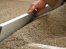 - Die halbtrockene Lösung ist aufgrund des geringen Durchflusses schwer zu verlegen.Um zu stampfen und auszurichten, musst du hart arbeiten. Es ist einfach unmöglich, dies auf großen Flächen manuell zu tun.