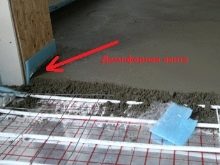 - Legen Sie imprägnieren, auf der Höhe des Estrichs legen Sie ein Dämpfungsband an den Wänden, Trennwänden und anderen Strukturen;