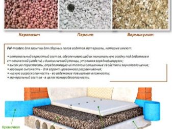 In Fällen, in denen Sie den Boden auf eine Höhe von mehr als 70 mm anheben möchten, um die Belastung des Fußbodens des Estrichs zu verringern, Team. Zement-Sand-Gemisch wird mit Blähton kombiniert. Leichtkörnchen geben die gewünschte Höhe, sie legen die vorbereitete Lösung aus. Halbtrockener Estrich fällt in die Kategorie des Floatens.