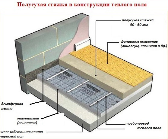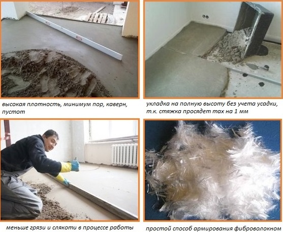 Der halbtrockene Estrich benötigt in seiner Zusammensetzung keine große Menge Wasser.Es ist eher angelegt als gegossen.