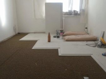 Sie sagen auch, dass, wenn Linoleum auf dem Boden ausgekleidet ist, schwere Schrankmöbel mit Beinen durch GFL-Platten drücken können, und die scharfen Absätze von Damenschuhen können sichtbare Dellen auf dem Boden hinterlassen, die den ästhetischen Reiz des Bodenbelags verderben. Bei Hochwasser der Estrich trocknet sehr lange, und es gibt keine Gewissheit, dass es überhaupt trocken wird.