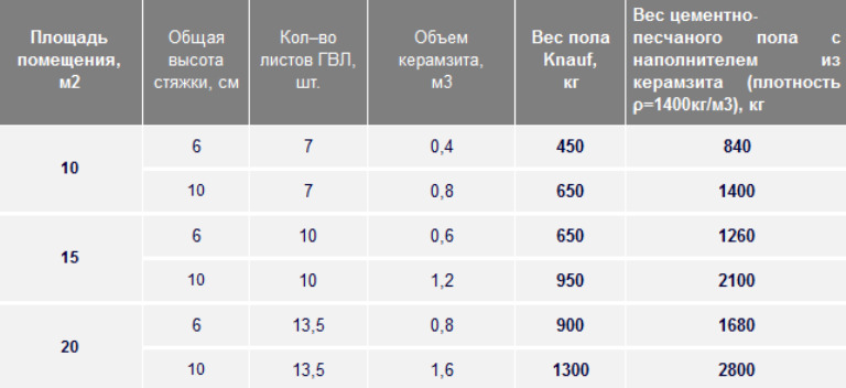 - die Bildung einer perfekt ebenen Bodenfläche, die einer Belastung von 500 kg / m2 widerstehen kann, in der Punktversion - 200 kg / m2;