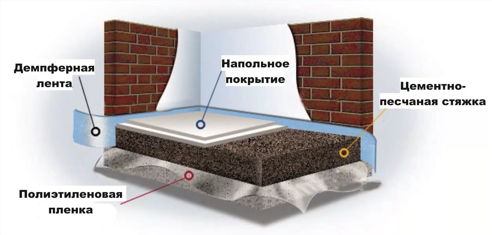 - die Möglichkeit, auf die oberste Schicht des trockenen Bodens jede Beschichtung aufzubringen: Feinsteinzeug, Fliesen, Laminat, Holzfußboden, Linoleum.