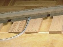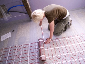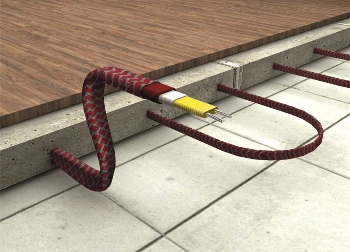 Elektrischer Kabelboden gilt als die gebräuchlichste, wenn auch nicht die beste Option. Sein Gerät ist sehr einfach: ein Heizelement (das Kabel selbst), ein Thermostat, ein Sensor, ein Koppler. Separat müssen Sie eine reflektierende Folie kaufen, die unter dem System platziert wird, so dass die Hitze steigt, nicht nach unten, an die Decke der Nachbarn.
