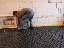 - Wasser Fußbodenheizung ist verboten, in einem Mehrfamilienhaus zu verwenden. Die Installation erfordert eine fachkundige Beurteilung des Zustands eines Wohnhauses, eine obligatorische Koordinierung der Anlage in allen erforderlichen Fällen und einen separaten Heizkreis oder Heizkessel mit einer Pumpe und einem Thermostat;
