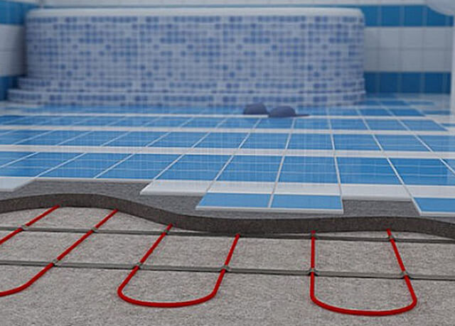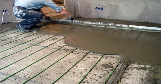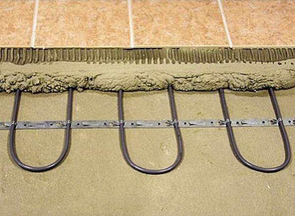 Kabelstärke bis zu 3 mm wird direkt in den Kleber montiert, von 3 bis 6 - wird mit Zement gegossen (es wird ein Estrich hergestellt).