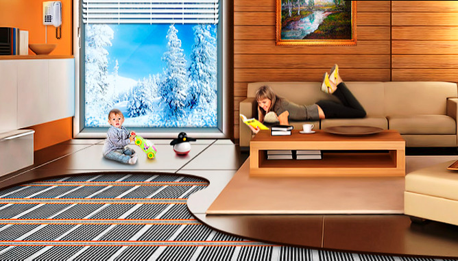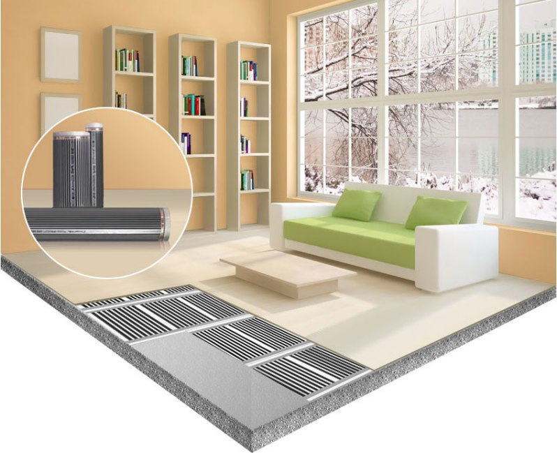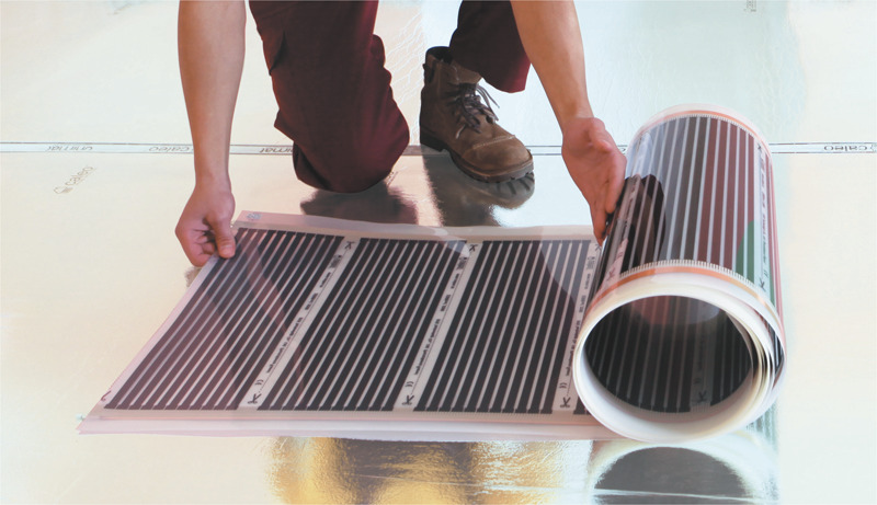 Der Kern des Prozesses der Umwandlung einer Energieart in eine andere ist wie folgt: Ein Strom fließt durch Metallreifen (Platten aus Kupfer, Silber, Aluminium oder einer Legierung dieser Metalle) in einem feuerfesten und feuchtigkeitsbeständigen Polymerfilm.Durch Heizelemente aus organischen Materialien wird diese in Infrarotstrahlung umgewandelt und erwärmt die Bodenoberfläche, während die Sonnenstrahlen die Erdoberfläche mit Hilfe von Wellenstrahlung erwärmen. Dies gewährleistet eine schnelle und ungefährliche Fußbodenheizung. Auch Infrarotstrahlen haben desinfizierende Eigenschaften und zerstören Gerüche und Bakterien.