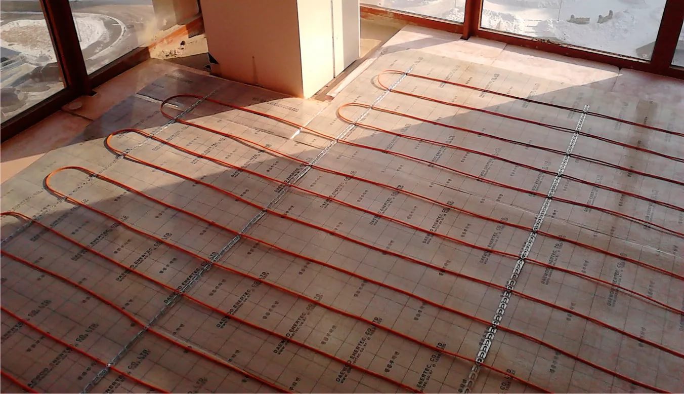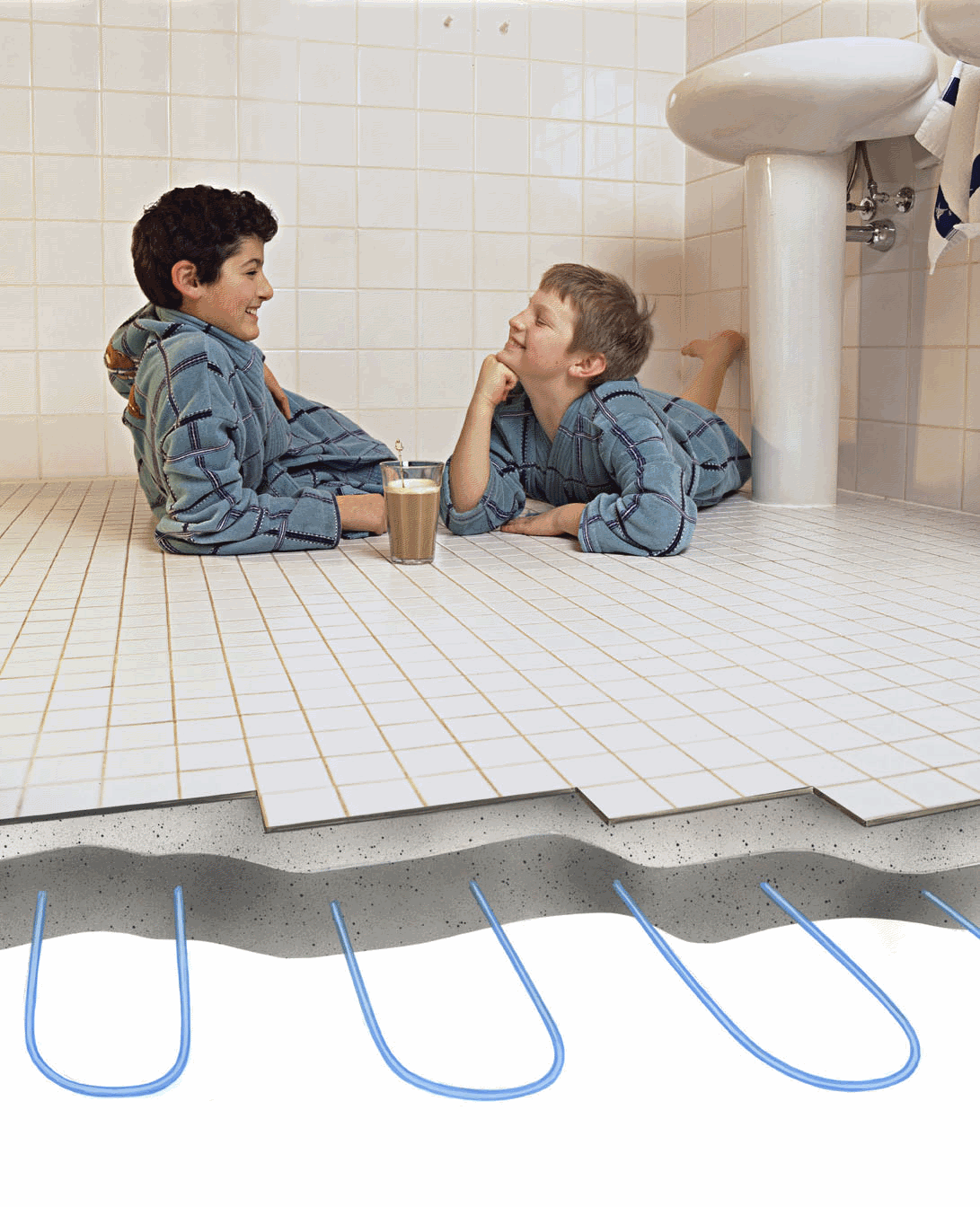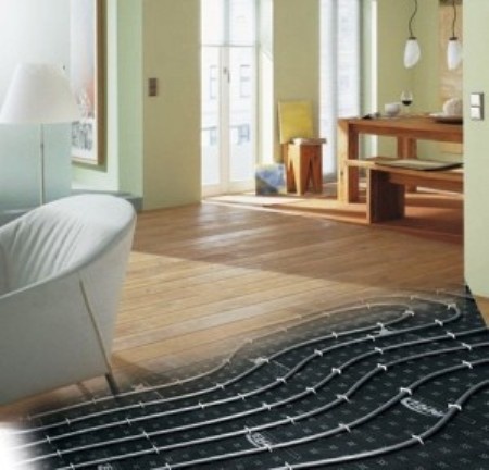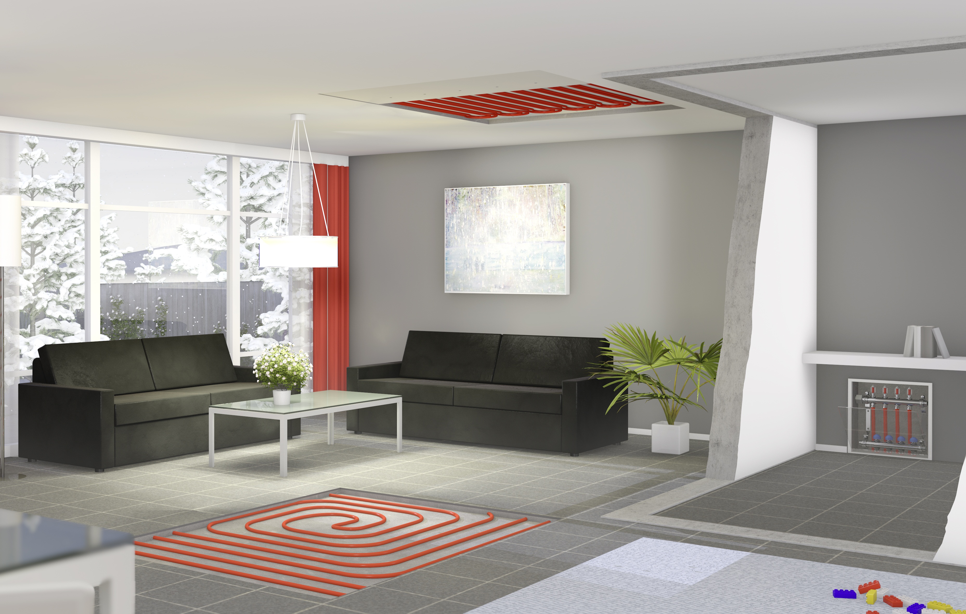 Es ist ein Heizsystem zum Heizen von Raumluft durch einen Bodenbelag auf der Basis eines Rohrsystems, in dem heiße Flüssigkeit (Wasser oder Ethylenglykol) zirkuliert.