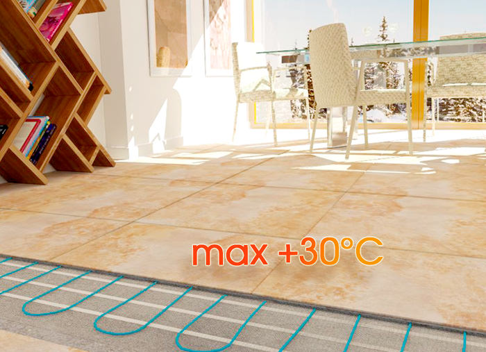 Jedes Fußbodenheizungssystem hat seine maximale thermische Schwelle. Normalerweise liegt es im Bereich von 30-35 Grad. Aber die Höchsttemperatur wird extrem selten benötigt, nur bei sehr kaltem Wetter, wenn der Fußboden als zusätzlicher Heizkörper im Haus funktioniert. Oft dauert es 24-25 Grad oder weniger.