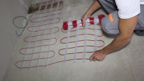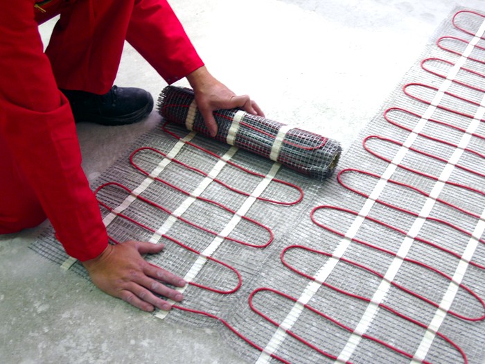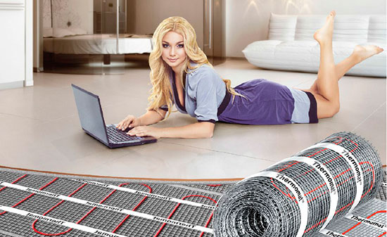 - Thermomaten sind verlegt. Sie können entlang spezieller Linien geschnitten werden, um die Stellen zu erreichen, an denen Möbel installiert werden, die nicht über den Boden hinausragen.