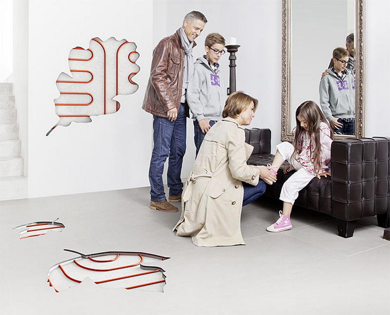 Der Fußboden erwärmt sich gleichmäßig und erwärmt die Oberfläche des Bodenbelags. So sorgt der warme Boden für eine optimale Wärmeverteilung im Körper: An den Füßen ist es wärmer als auf der Höhe des Kopfes.